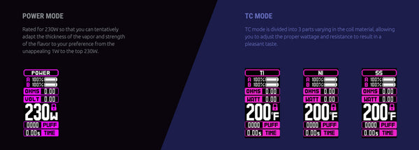 Resistance Range: 0.1ohm-2.5ohm (VW)/0.05ohm-2ohm (TC)