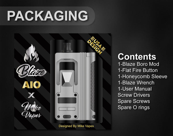Here comes the new AIO designed by Mikevapes - Blaze AIO. The Blaze AIO is a masterpiece of engineering, crafted with fully mechanical construction and a high customizable design to fulfill the user's preferences. Equipped with a liquid-proof 88w broad-range chipset, ensuring durability and satisfaction for all-day vaping. It's compatible with all regular Boro tanks. There are 4 colors for you to choose from.