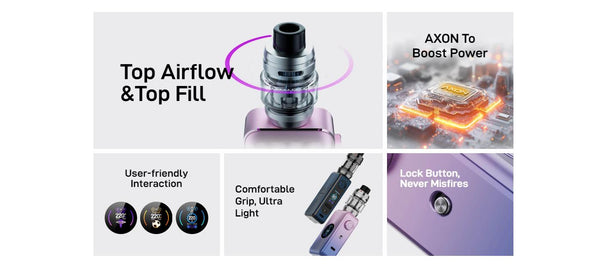 Vaporesso GEN MAX Mod Kit is powered by two 18650 batteries (not included), offering an impressive power range from 5 to 220W. With its 6 ml tank and superior airflow system, enjoy an optimized, leak-free vape experience. The Gen Max Kit also features a 0.96inch TFT screen for a clear,GEN MAX Mod Kit is designed specifically for DTL users. The paired iTank T has been upgraded with top airflow and top filling, making refills simple and enhancing leak resistance. The GTi coil now features COREX 2.0 technology, delivering improved flavor and vapor production. The GEN MOD utilizes the AXON CHIP and comes with a newly upgraded UI, offering multiple modes and themes to customize your DTL vaping experience.