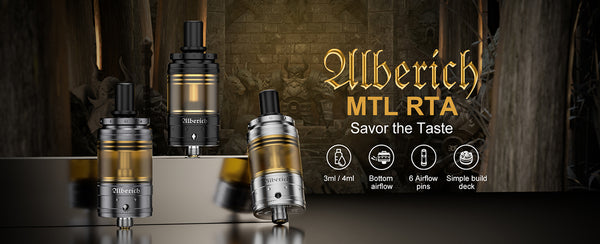 Alberich MTL RTA of 22mm diameter is specially designed for MTL vapers. With bottom airflow design, it can bring you flavorful taste and strong throat hit. It has 6 airflow...