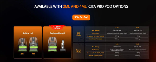 Eleaf iCita Pro blends refined design with powerful performance. With a built-in 1600 mAh battery and up to 50W output, it's built for sustained sessions. The zinc-alloy body with leather-textured finish delivers premium feel, while the adjustable airflow and intuitive touch control offer customizable results for both RDL and DTL users. Refillable pod capacity ensures versatile usage, and the fast Type-C 5 V/2 A charging keeps you powered up.