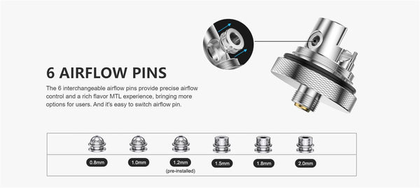 3. 6 airflow pins provide precise airflow control and different MTL experience;
