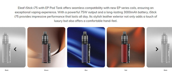 Eleaf iStick i75 Kit with stylish leather exterior is luxurious and comfortable to hold. It is composed of iStick i75 Device and EP Pod Tank 5ml. It is powered by...