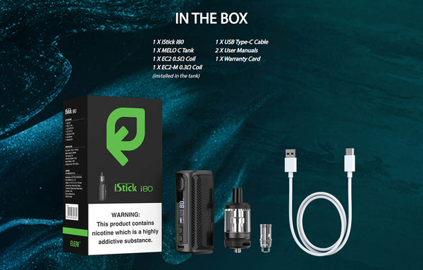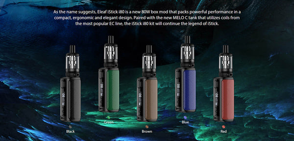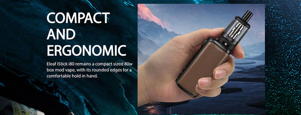 Eleaf iStick i80 Kit Power By Built in a 3000mAh integrated battery and can be accurately rated at 80W output wattage, the OLED screen is located at the side, pressing the buttons to give access to the menu and have Modes(VW(Wattage),Bypass(BP),TC-NI,TC-Ti,TC-SS316,TCR-M1,M2,M3). a The Meco C Tank has 5ml vape juice capacity, which is compatible with EC coils: EC2-M 0.3ohm Coil(best for 30-50W) and EC2 0.5ohm Coil(best for 30-100W) prepared. The slide-and-fill solution is nice to resupply. iStick i80 is an elegant and ergonomic compact design that brings the best comfort and allows you to easily enjoy vaping.