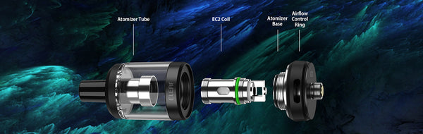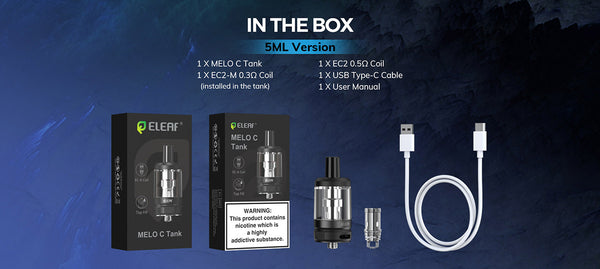Eleaf MELO C Tank of 25mm features 5ml/2ml e-juice capacity and easy slide and fill system. MELO C is compatible with all EC Coils, making refilling of the tank a breeze.