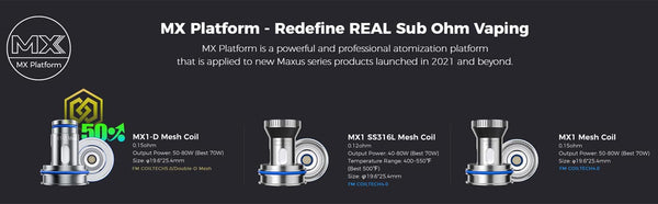 Moreover, the pod tank now comes with seven MX series coils for various DTL vaping needs, and there's a wide range of MX series coils on the way. You can freely switch different vaping modes for different MX series coils according to your preferences.
