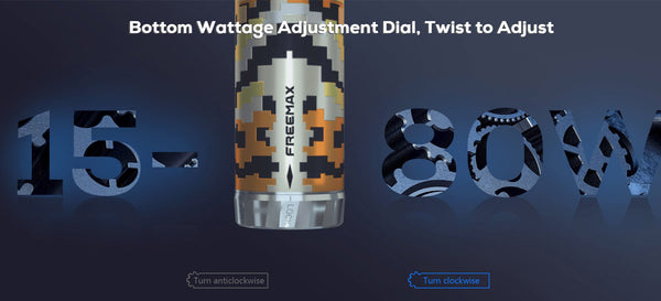 Freemax Twister 2 80W Kit is a rare variable wattage vape pen kit, which you can adjust the wattage by a simple twist of the base from 15W to 80W or turn fully anticlockwise to lock the device and prevent accidental operation.