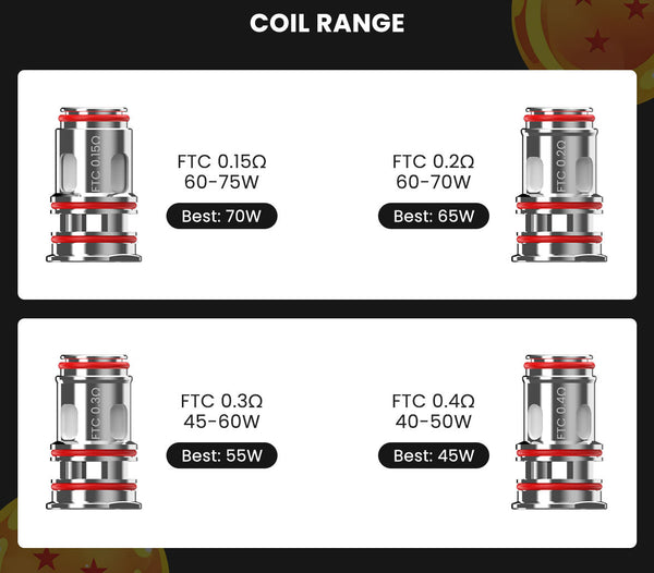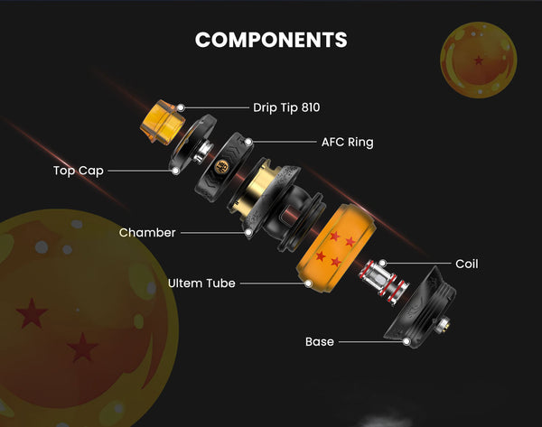 The Fumytech Dragon Ball V2 ​​Sub Ohm Tank​​, an optimized version of the original Dragon Ball RDTA, retains its signature ​​ball-style glass tank​​ with a 5.5ml e-juice capacity. The ​​top-push cover refill design​​ allows vapers to simply slide the drip tip-integrated cap and inject e-liquid seamlessly, ensuring leak-free convenience. The ​​POM plastic drip tip​​ offers high strength, rigidity, and heat resistance for prolonged durability.This ​​Sub Ohm Tank​​ features ​​adjustable wide airflow​​ to tailor your vaping experience, now enhanced by compatibility with ​​FTC Series Coils (0.15/0.20/0.30/0.40ohm)​​. Designed for cloud chasers, the low-resistance coils and optimized airflow synergize to deliver ​​massive vapor production​​, making it an ideal choice for enthusiasts prioritizing thick, dense clouds.