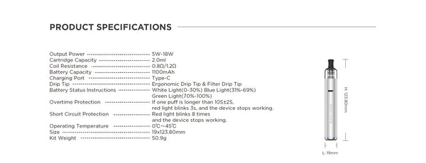 Geekvape Wenax S3 EVO Vape Pen Kit comes with a rechargeable 1100mAh internal battery with max 18W output, connected with a 2ml Geekvape S cartridge with two options (0.8ohm & 1.2ohm), Creating a flavorful vapor, the 3-level output adjustment and its airflow switch give a customized hit. Its fully compatibility with Soft-touch Drip Tip , Filter Drip Tip & M1 Plastic Drip Tip , a perfect alternative to cigarettes With precise control for both airflow and output , this stylish vape pen provides a marvelous 2-day-use battery life.
