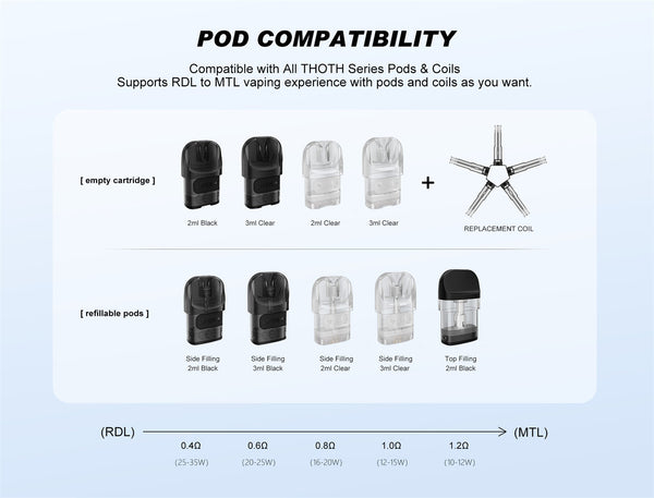 Introducing the new THOTH T Pro pod system by Kumiho, an upgrade from the original THOTH T design. Featuring a large 1.44 inch color screen that displays all your vaping...