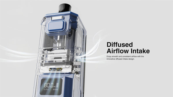the Lost Vape Centaurus G80 AIO Pod Mod Kit, which features a 5-80W output range, a durable zinc and aluminum chassis, and a 5ml capacity in the Centaurus Boro Tank....