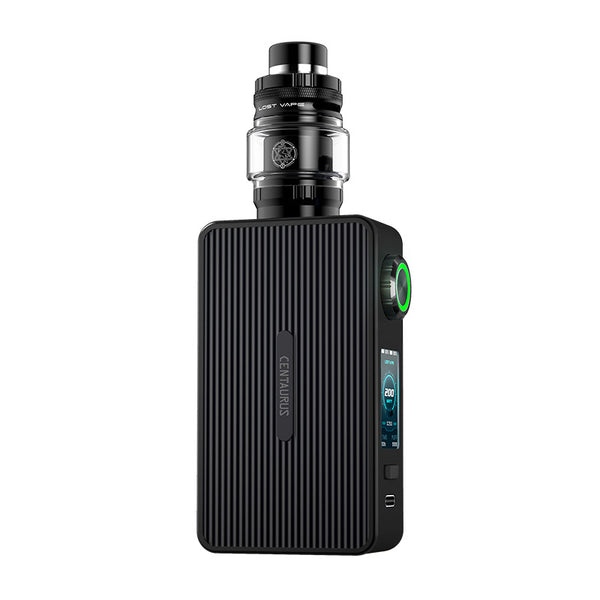 Lost Vape Centaurus M200 Box Mod Kit features a 200W Quest 2.0 chipset, variable wattage mode, temperature control settings, a color screen, two 18650 batteries (not included), a fire button...