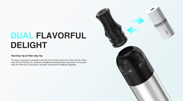 Thelema Nexus Pod has a 2.0ml cartridge capacity and is filled with liquid from the side. There is also a cartirdge with an integrated 0.8 ohm resistance coil, which guarantees an authentic and intense taste experience. The pod and battery connect securely and easily to each other magnetically using Plug & Play technology.