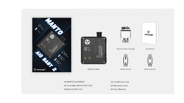The MANTO AIO BABY2 changes the game for compact AIO vaping with its small size and powerful 60W max output . Discover a level of power and simplicity in such...