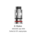 SMOK D-Coil is designed with 4 silicone rings, features high-density antibacterial cotton, hexagon-structure dual meshed heating wire. It comes with three types of coil resistance: Meshed 0.15ohm (perfect for DTL, 55W-65W), Meshed 0.23ohm (perfect for DTL, 45W-55W), Meshed 0.4ohm (perfect for RDL/DL, 25W-35W). SMOK D-Coil is compatible with SMOK X-Priv Solo Kit, SMOK TF-D SubTank. 5pcs each pack.