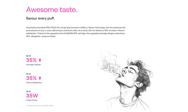 1. ​PRO-FOCS 4.0 Technology – Enhances flavor purity and intensity for 35% greater satisfaction.