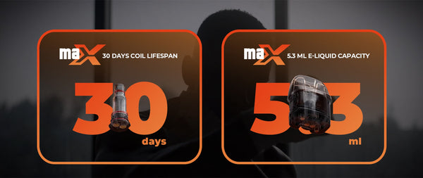There is a 66% increment in coil lifespan up to 30 days compared with regular coils in the pod system. The 0.96 inch TFT color display allows for a more immersive visual experience, while a 1500 mAh battery and 5.3ml e-liquid capacity make the vaping journey powerful and enduring without any anxiety.