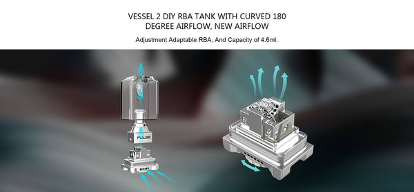 9. Vessel 2 DIY RBA Tank With Curved 180 Degree Airflow, New Airflow Adjustment Adaptable RBA, And Capacity Of 4.6ml.
