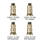 Coil Resistance: G-3 0.6ohm mesh coil(KA1, 19-22W), G-4 0.8ohm mesh coil(KA1, 15-18W), G-5 1.0ohm mesh coil(KA1, 12-15W), G-6 1.2ohm mesh coil(KA1, 10-13W)